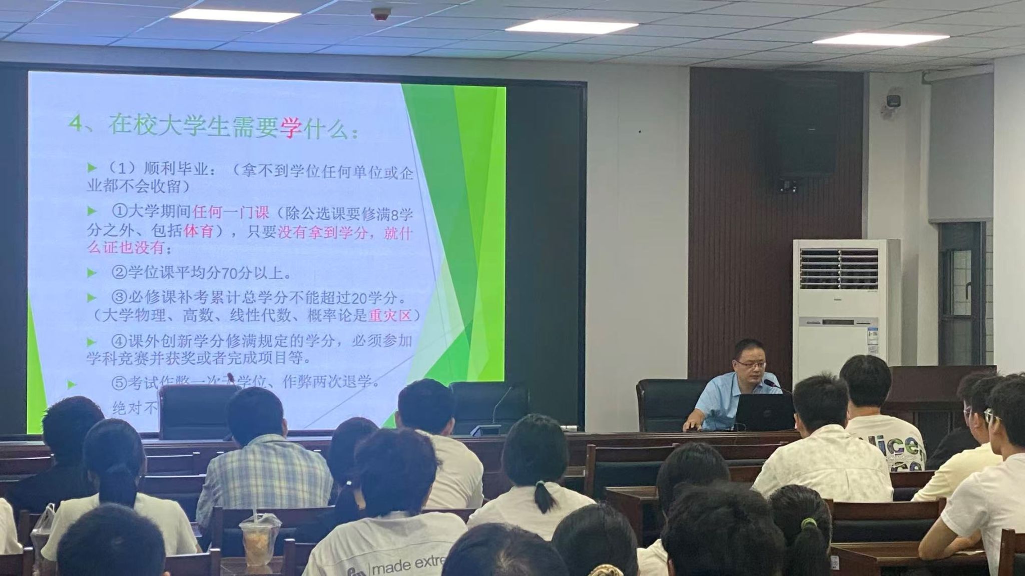 在主讲教师专业教育环节,郭海如教授以专业负责人的视角,为新生带来了一场兼具深度与温度的专业解读。作为省级一流课程《单片机原理及应用》负责人、全国大学生智能车团队及全国蓝桥杯电子类竞赛负责人,郭教授结合自身丰富的教学与竞赛指导经验,从专业培养目标、课程体系设置、实践能力培养、就业与升学方向四大维度展开讲解。他重点强调,计算机科学与技术是一门“理论与实践紧密结合”的学科,新生不仅要扎实掌握编程语言、数据结构、计算机网络等核心理论知识,更要积极参与智能车竞赛、蓝桥杯竞赛等实践活动,通过“以赛促学、以练促能”提升创新思维与工程实践能力。同时,郭教授还分享了往届学子在竞赛中获奖、进入知名企业就业或考取顶尖高校研究生的案例,极大激发了新生的学习热情与奋斗动力。