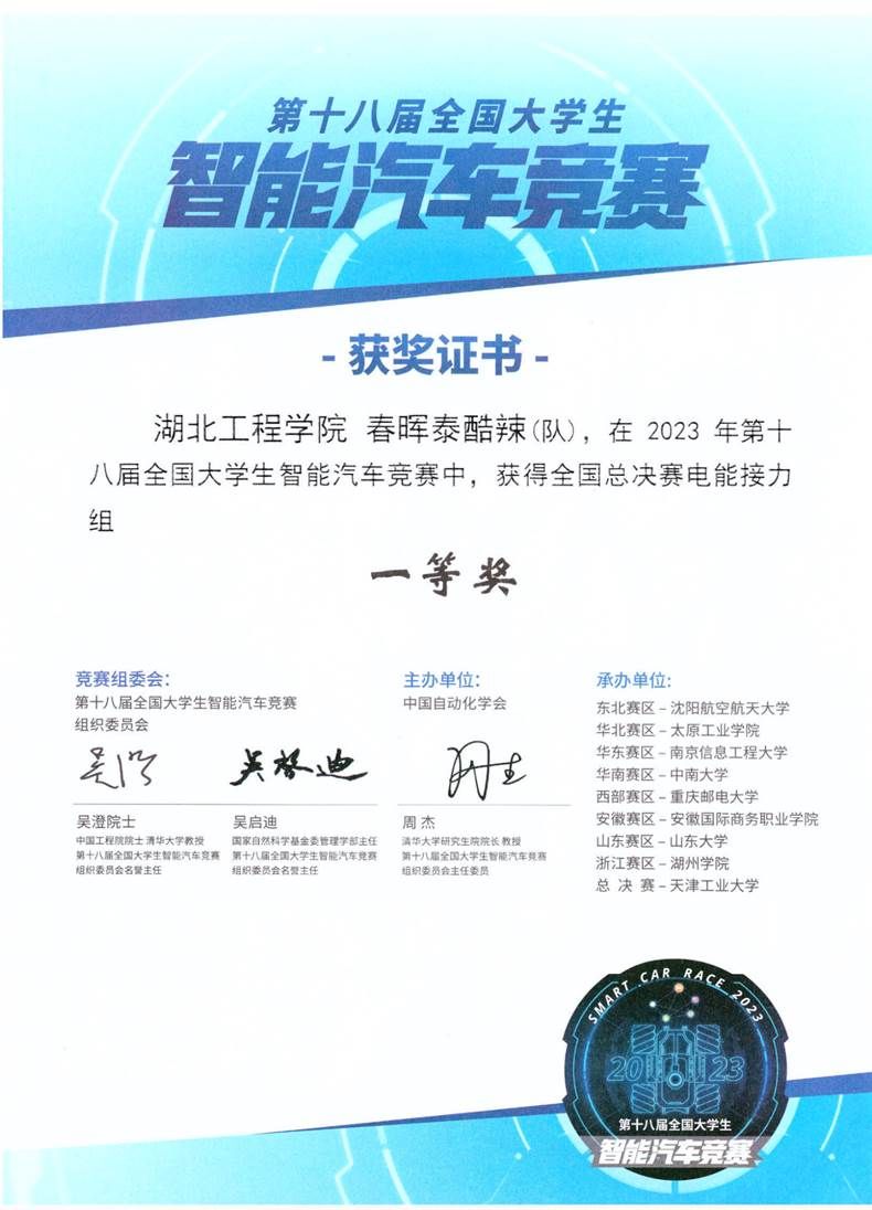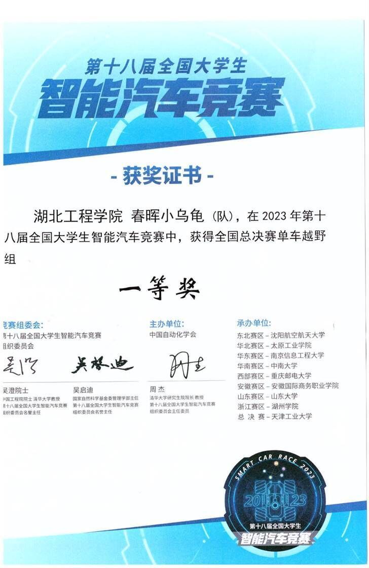 本网讯:8月17日至8月19日,第十八届大学生智能汽车竞赛全国总决赛在天津工业大学落下帷幕。本届竞赛共吸引来自全国的3138支队伍,万余名大学生参加。最终504支队伍脱颖而出,进入全国总决赛,1500余名参赛队员严阵以待。我校共5支队伍进入国赛,最终获全国总决赛一等奖2项,二等奖2项,创历史新高。具体获奖名单如下: