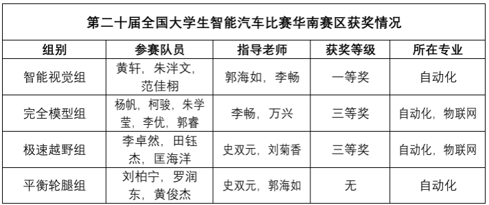 我院学子在第二十届全国大学生智能汽车竞赛华南赛区中荣获佳绩