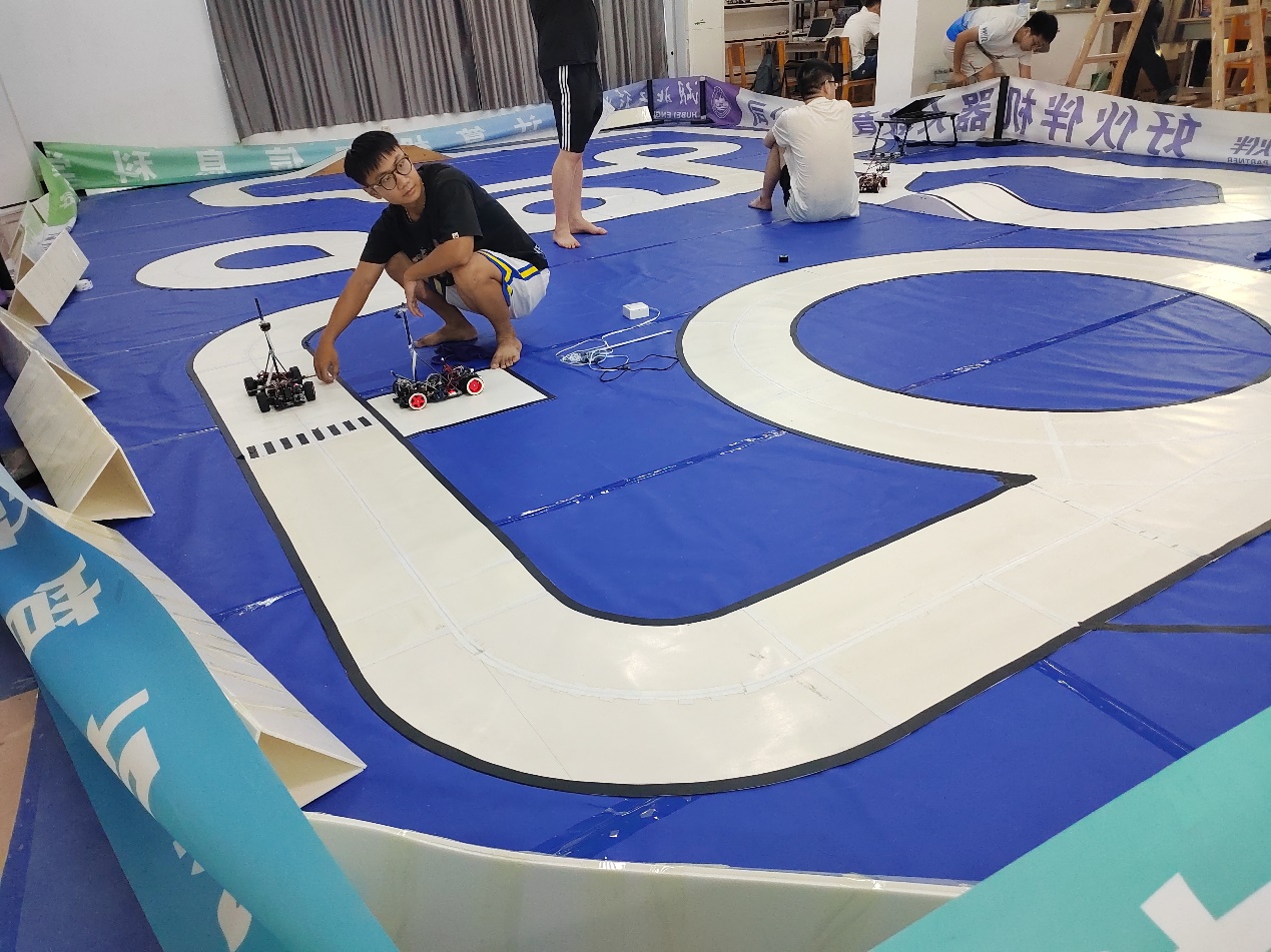 近日,我院两支队伍正为全国总决赛奋力拼搏。为了提高小车适应性,尽量减少因环境因素造成的干扰,我院在计科楼铺设了多个赛道。同时,根据已发现的不足,不断优化、改进两支队伍的编程、电路和机械,力求做到最好;未来几天的训练,也将以国赛的标准严格要求,完成高质量的训练。