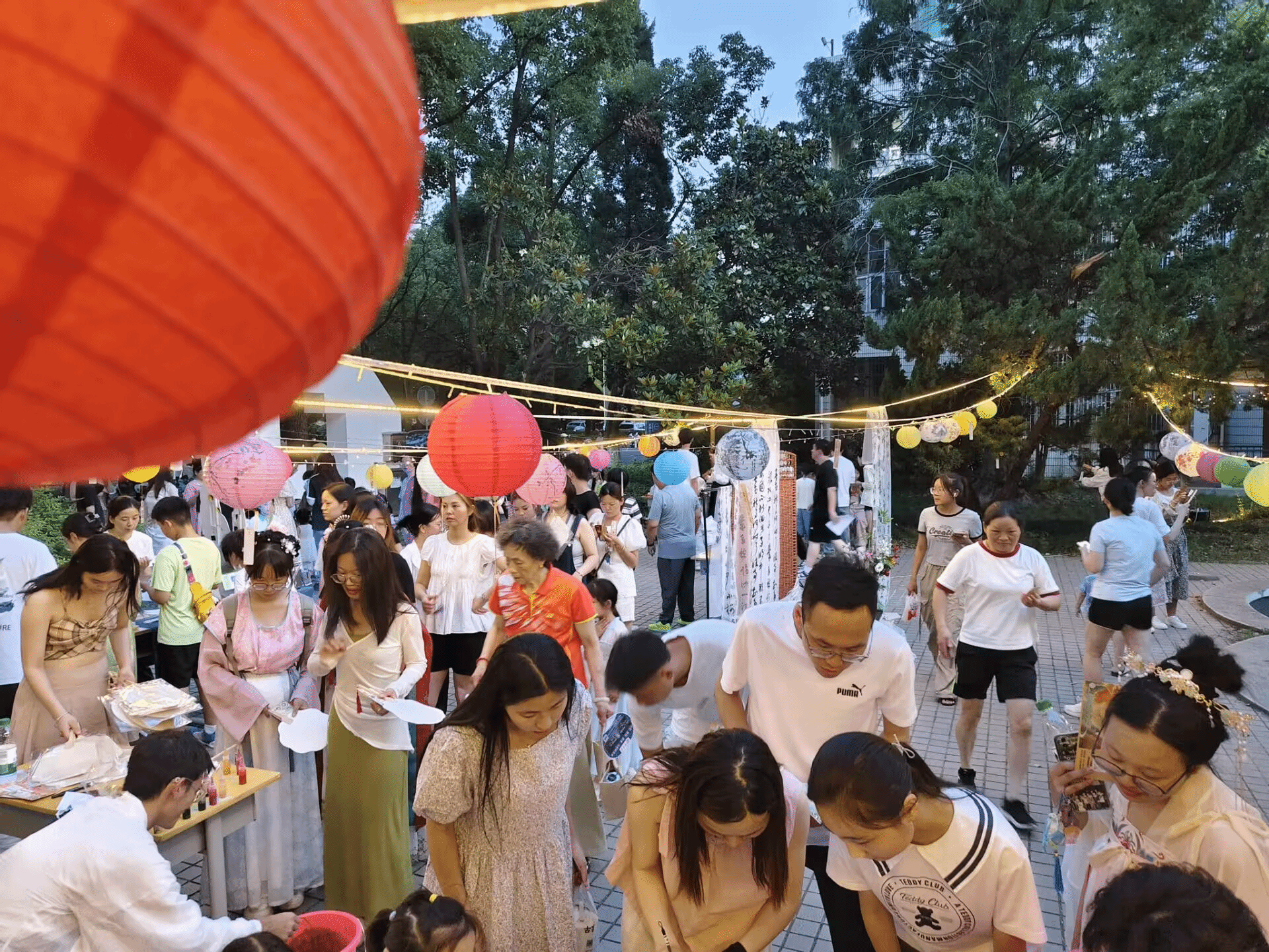 夕阳渐落,余晖漫散,华灯初绽,游人纷至。伴随夕阳缓缓西沉,活动准时而启。在游戏区域,各类小游戏令人流连忘返:形制问答,探究着汉服文化的深厚底蕴究竟几何;仿古绘今,考验着谁对古汉字的认知更为精准;华灯释迷,让人们在灯下思索谜题的答案。虽游戏数量有限,却皆与传统文化紧密相连。手工区的绘梦点睛、绘写丹青、桂子飘香等,更是让游人充分领略到亲手制作传统物件的独特意趣。