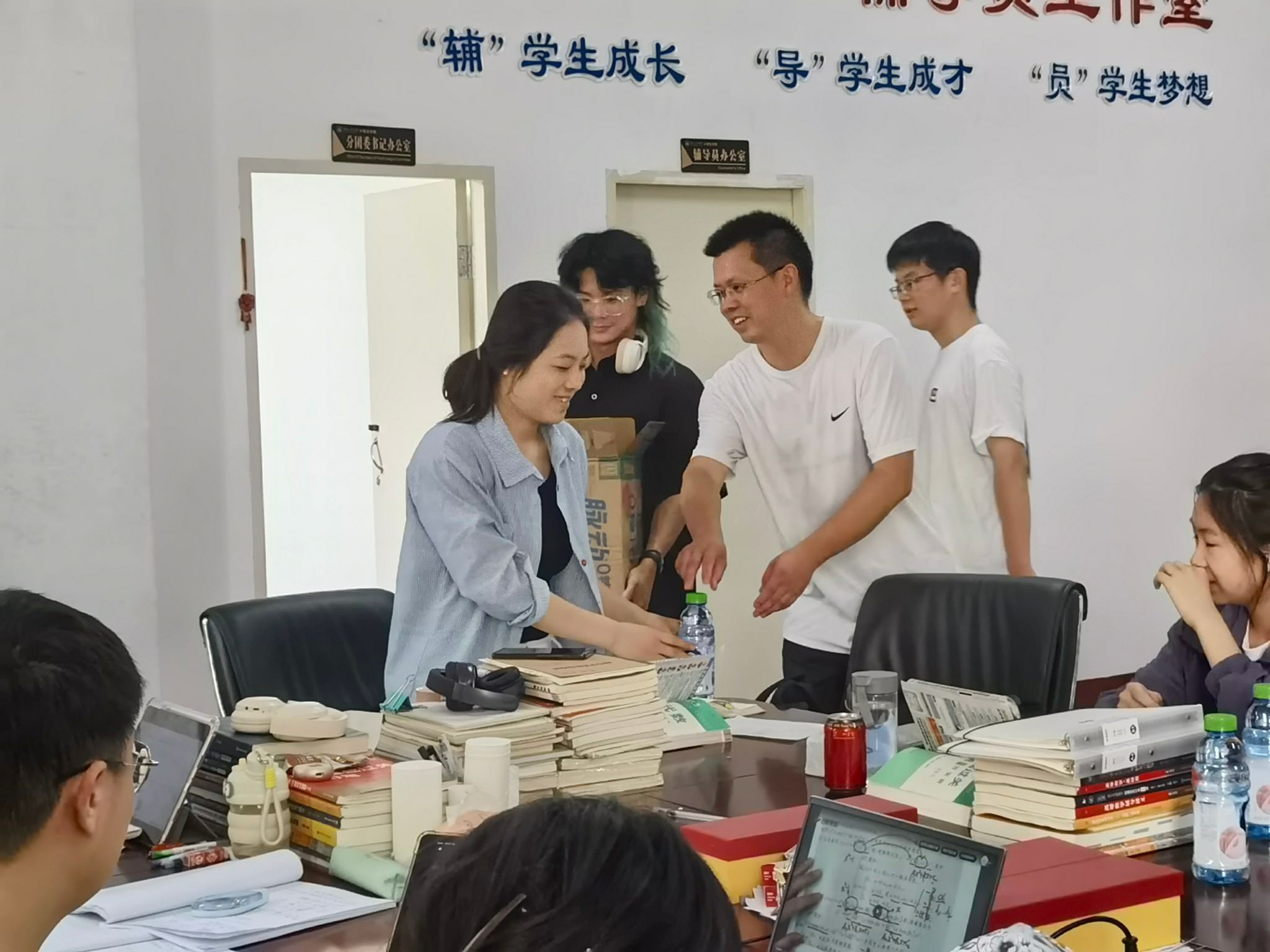 胡部长心系同学,详细询问了考研学生的复习进度和心理状态,鼓励他们坚定信念,保持积极的心态,科学备考。对于正在进行科研的同学,胡部长认真倾听他们的研究进展和遇到的问题,给予了宝贵的指导和建议。同时,胡部长还亲切地与参与暑期竞赛的同学们交流,对他们的拼搏精神表示赞赏,并为他们加油鼓劲。