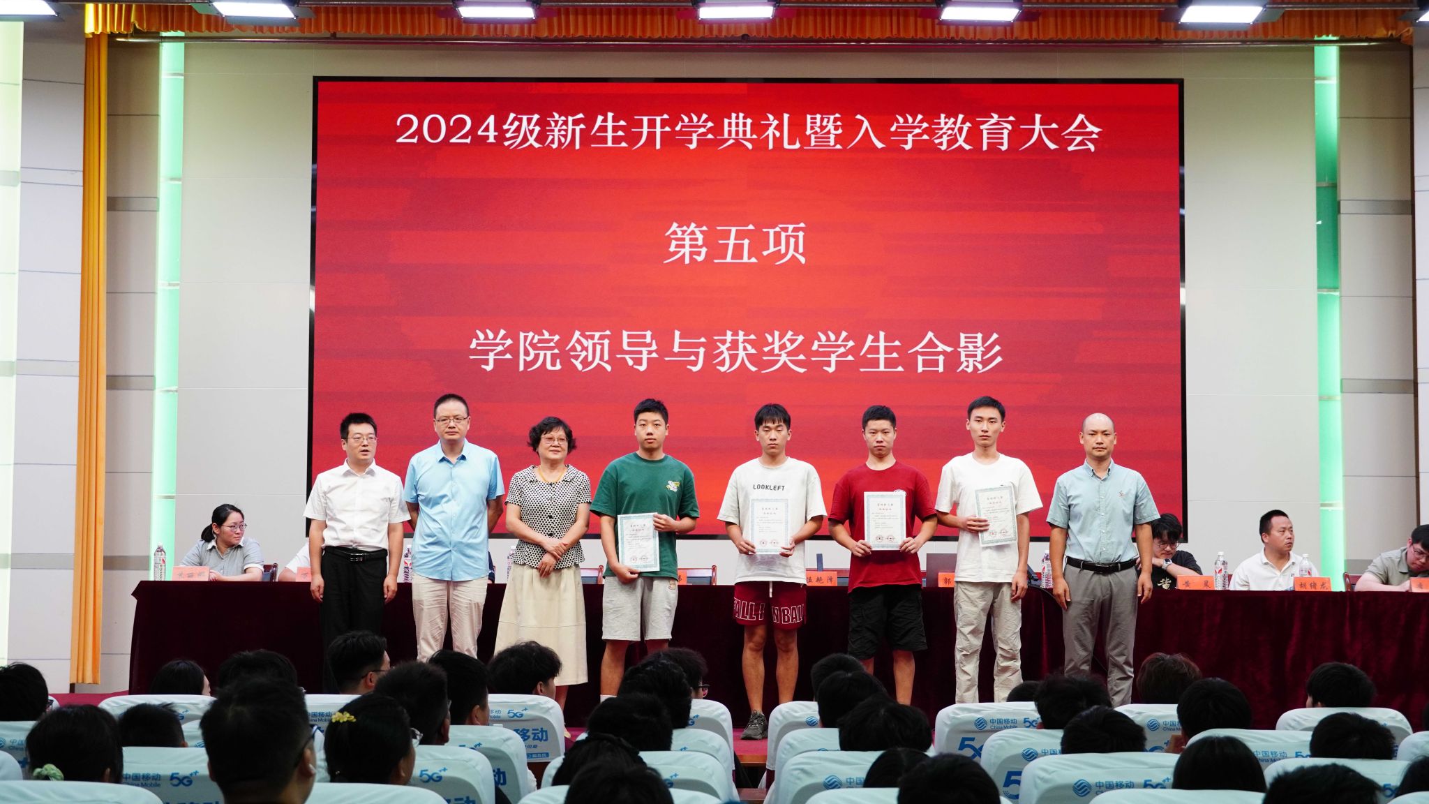接着,大会主持人熊伟介绍了学院在2024年国家A类学科竞赛学生获奖情况。学院领导与获奖学生依次握手并合影留念,这一时刻激励着新同学们以优秀的学长学姐为榜样,努力拼搏,为自己的大学生活增添绚丽光彩。