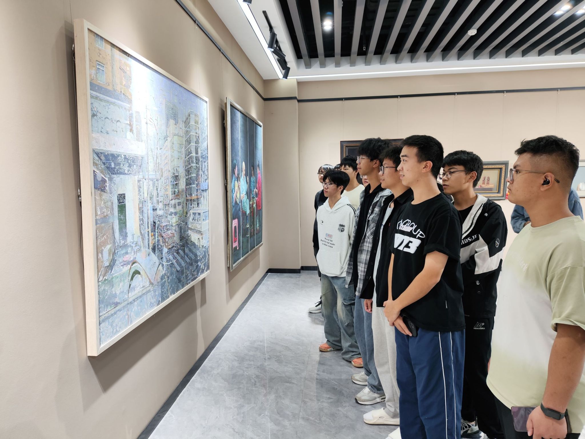 参观过程中,同学们深受触动。他们纷纷表示,过去一直认为艺术与工科毫无关联,但这次参观彻底改变了他们的看法。这些精美的画作让他们感受到了艺术的魅力,激发了内心深处的创造力和想象力,也让他们意识到艺术对于技术和设计的重要性。