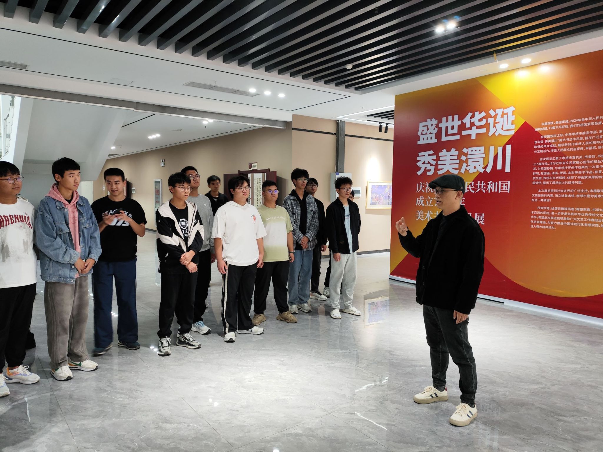 美术学院的李波老师也专门来到了现场,他用生动且专业的讲解,为同学们开启了一场艺术解读之旅,让同学们更深入地领略画作背后的奥秘。