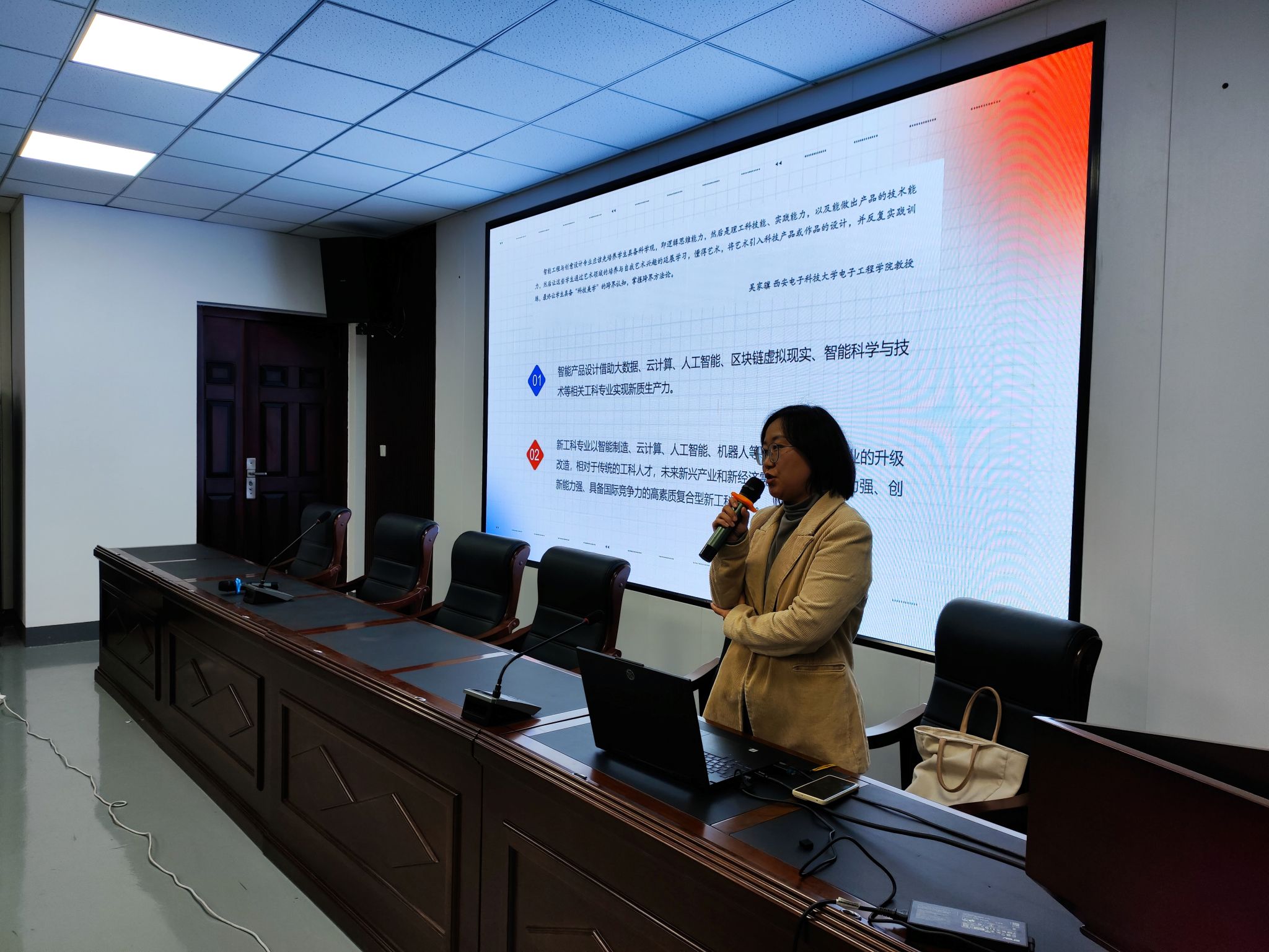 龚怡慧老师近年来致力于智能产品设计研究,多项作品于设计展览中屡获好评。讲座内容紧扣教育部提出的新工科、新文科等“四新”建设要求,龚老师结合自身专业,以跨学科设计案例及本校产品设计专业学生作品为例,详细地讲解了产品设计从传统的形态设计到如今重视用户体验、智能化和交互性设计的转变,而计算机科学为产品设计提供强大的技术支持,如物联网技术的发展使得产品之间的连接和交互变得更加便捷,计算机科学中的语音识别、自然语言处理的技术,实现用户与产品的语言、语音交互和智能化控制。产品设计利用大数据、云计算、虚拟现实等相关计算机学科知识,实现新质生产力发展;同时产品设计也为计算机科学提供了丰富的应用场景和实际需求,相对于传统的工科人才,未来新兴产业和新经济需要的是实践能力强、创新能力强的高素质、综合型新工科人才。