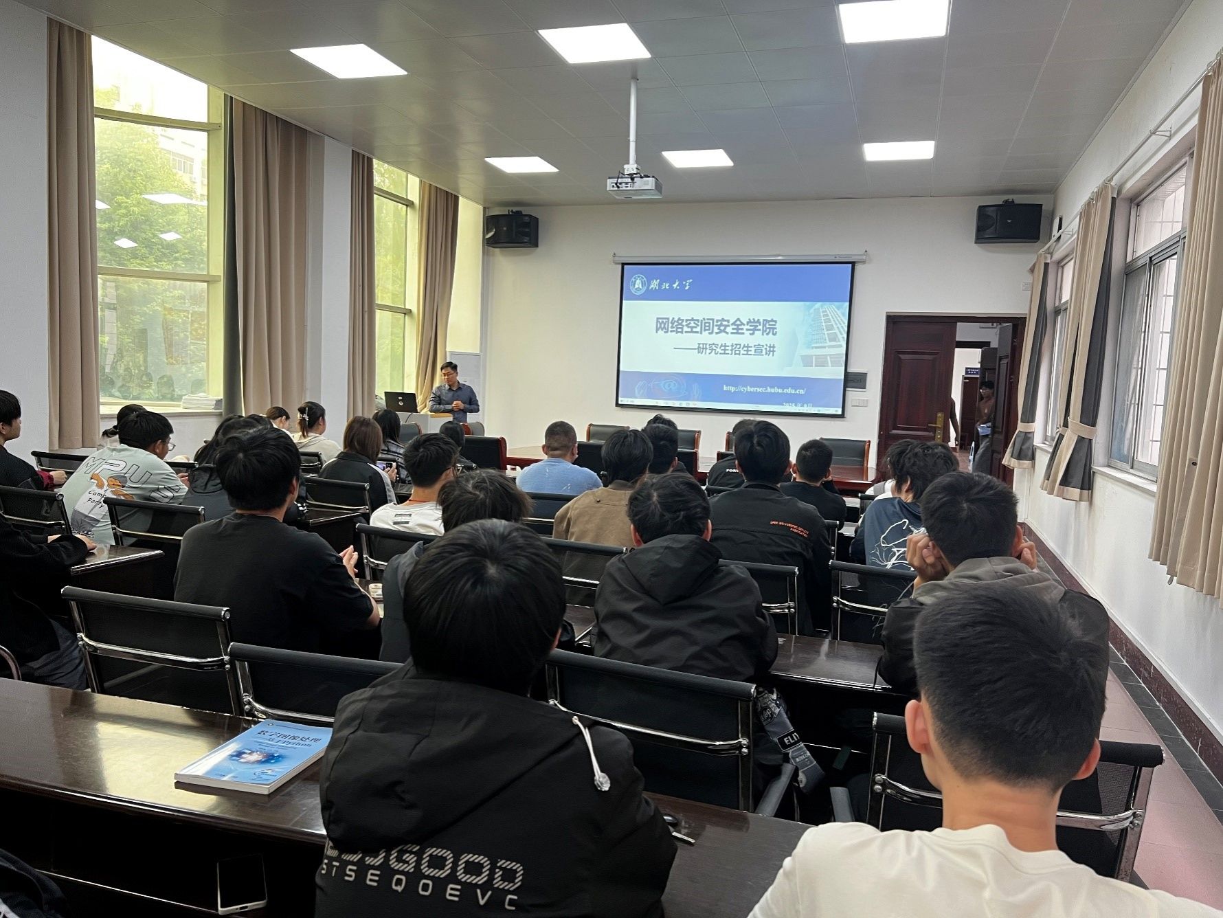 宣讲会上,何鹏老师首先对湖北大学网络空间安全学院的办学历史、师资力量、科研平台及学科优势进行了系统介绍。他重点阐述了该学院在密码学、网络安全、数据安全等前沿领域的特色研究方向与丰硕科研成果,展示了学院雄厚的教学实力和良好的科研氛围。
