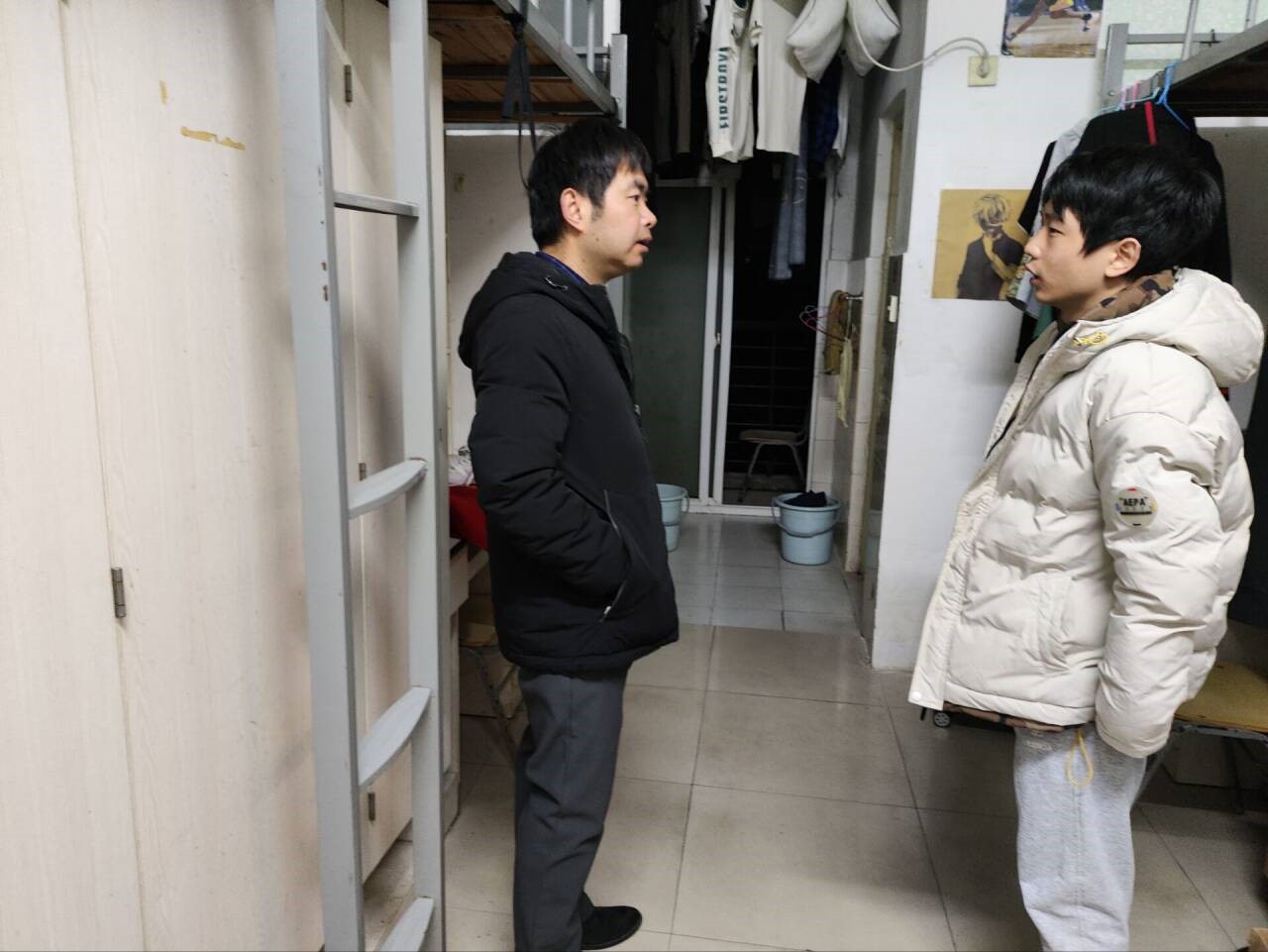 走访过程中,老师们带着《查寝情况表》,逐一到各楼栋签到点与辅导员老师对接后,便深入每间宿舍与同学们亲切交流。"期末复习进度怎么样?""假期返乡车票买好了吗?""有没有遇到什么困难?"一句句贴心的问候,迅速拉近了师生距离。