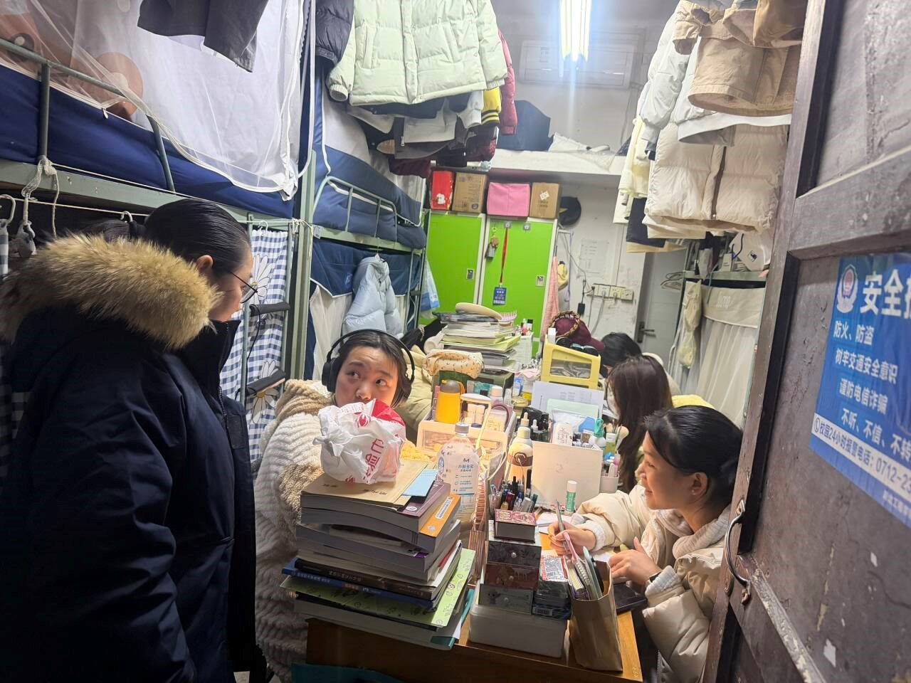 学院始终坚持以学生为中心,此次走访重点聚焦三大关切:一是日常管理方面,老师们细致询问了同学们的身心健康状况、期末备考状态,对学业预警学生给予特别关注,并逐一排查校外租房情况;二是针对2026届毕业生,老师们深入了解考研复试准备、公务员考试、实习落实及毕业论文进展等情况,为毕业生提供精准的指导与建议;三是强化节假日安全管理,老师们反复叮嘱同学们离校时务必做好"三关"——关电、关水、关门,并重点提醒路途交通安全、寝室用电安全及防范电信诈骗等注意事项。