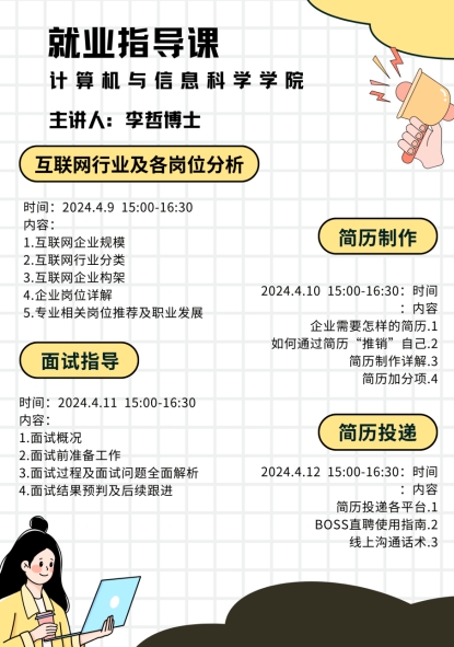 这一系列就业指导课程的成功举办,不仅为学生提供了宝贵的就业知识和技巧,也为学生未来的职业发展奠定了坚实的基础。学生们纷纷表示,通过这一系列课程的学习,他们对互联网行业有了更为清晰的认识,对简历制作和面试技巧有了更为深入的了解,对未来就业充满了信心和期待。