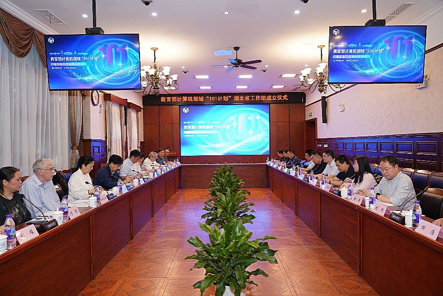 2025年5月13日,计算机“101计划”湖北省工作组成立仪式在华中科技大学梧桐语学术交流中心问道厅举行。教育部高等教育司理工处处长候永峰,湖北省教育厅高等教育处处长崔锋,华中科技大学副校长、计算机“101计划”湖北省工作组组长冯丹教授,图灵奖获得者、计算机“101计划”发起人John Hopcroft教授等领导和专家出席了本次仪式。华中科技大学校长助理、本科生院院长文劲宇教授主持该会议。