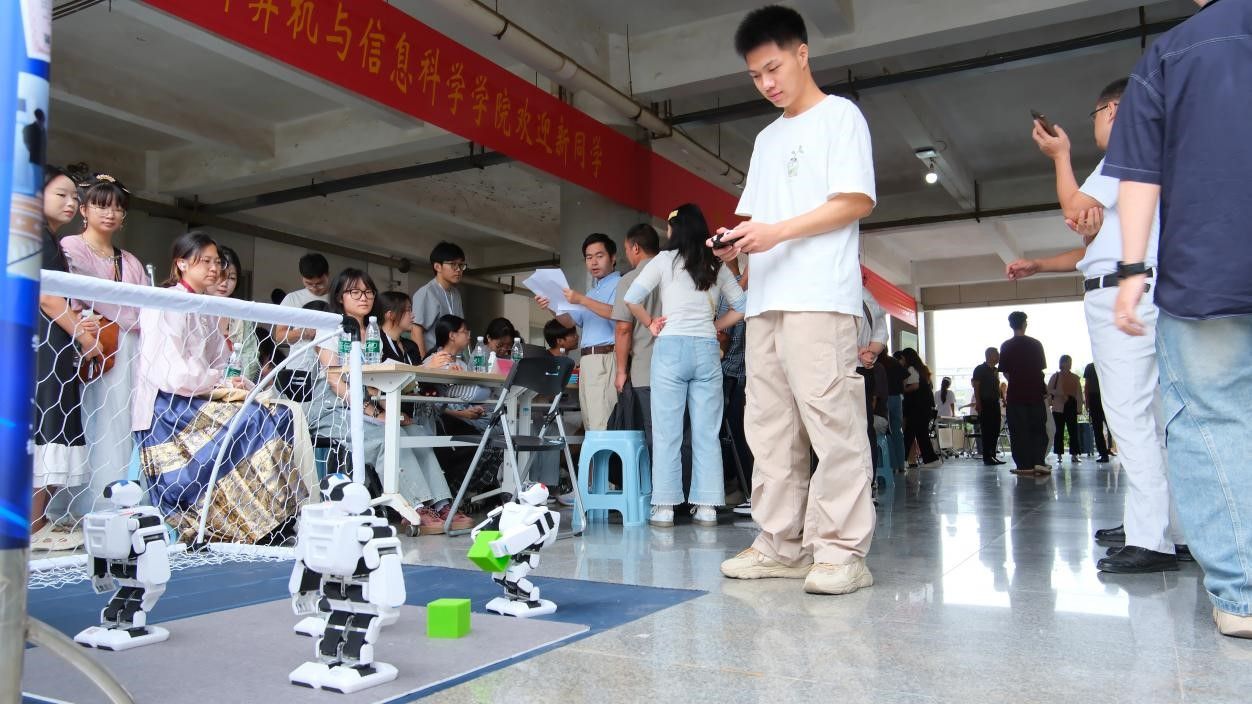 为2025级新生们营造浓厚的科技氛围,现场展示机器人为新生开启了一场沉浸式的“科技初体验”。灵动的机器人在摇着机械手臂与新生握手互动,将科技的趣味性与学院的专业特色悄然融入迎新环节。