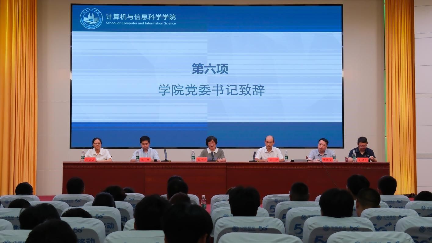 随后,学院党委书记伍艳泽在致辞中向全体新生表示祝贺,向2025级新生着重介绍了国家、学校的相关政策,鼓励同学们抓住时代机遇,好好学习,坚定理想信念,树立远大目标,充分利用学校现有的资源,勤奋学习,锤炼过硬本领。