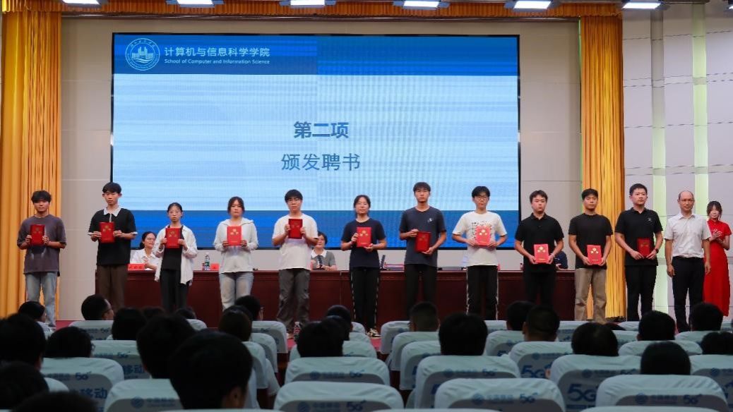 大会在雄壮的国歌声中拉开帷幕,全体师生齐声高唱国歌与校歌。随后学院伍艳泽为新生班主任颁发聘书,徐方为2025级各班级助理颁发聘书,标志着新学年教育教学与班级管理工作的全面启动。