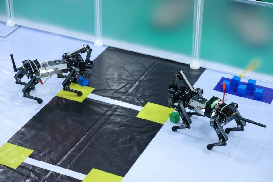 该竞赛是国内高层次A类学科竞赛,其中“机械狗极限救援”赛道以真实应急救援场景为蓝本,要求参赛队伍操控机器狗完成一系列高难度任务,对机器狗的智能感知、运动控制及队员的临场决策能力提出了极高要求。我院两支队伍在备赛阶段历经多轮攻坚,针对机器狗的算法优化、硬件调试、多任务协同等环节开展了反复测试演练;竞赛现场,队员们冷静应对赛道中的突发状况,精准操控机器狗完成各项救援动作,其专业素养与团队默契获得评委一致认可,从众多高校队伍中脱颖而出。我院团队始终坚持“场景化实战训练”,专门搭建了1:1还原竞赛场景的训练场地,让机械狗在真实场景中打磨技术,这也成为我们突围的关键。