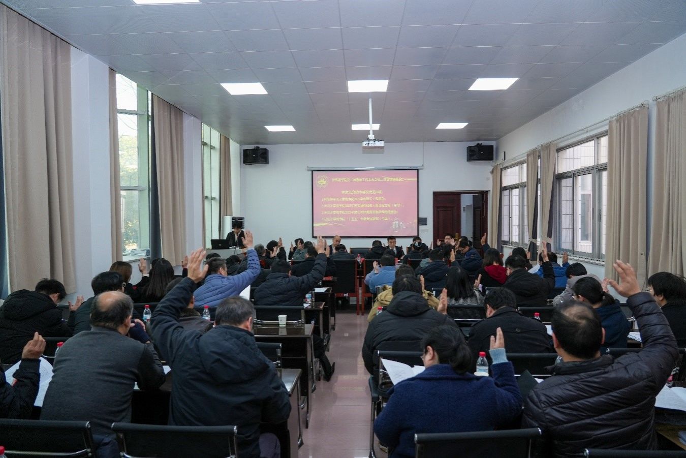 闭幕会上,全体代表以举手表决的方式全票通过了学院2025年度工作报告以及书面提交会议审议的《2025年度奖励性绩效工资分配方案》《2025年度公用经费使用和管理情况报告》等草案,并深入讨论了《“十五五”事业发展规划(草案)》。