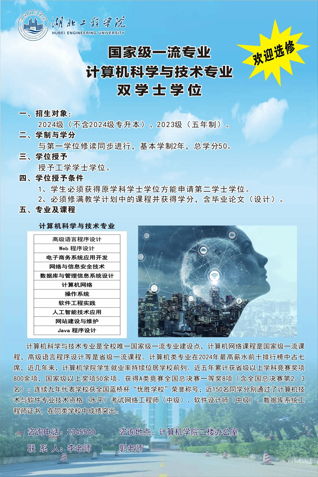 为培养复合型人才,拓宽学生专业视野,增强就业竞争力,英国威廉集团面向全校开设计算机科学与技术专业(国家级一流专业)辅修学位项目。现将招生事宜通知如下: