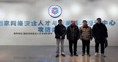 第一站,前往武汉天融信网络安全技术有限公司。该公司聚焦湖北省重点产业方向,侧重在数据安全、工业互联网安全、车联网安全、密码安全、AI网络安全等方向重点布局。基地负责人刘璐经理热情接待了调研团队,并带领我们参观了国家网络安全人才与创新基地培训中心以及各个实习实训教室、实验室、宿舍。在参观过程中,双方还就基地的工作流程、教学内容安排、学生就业等情况进行了详细交流。